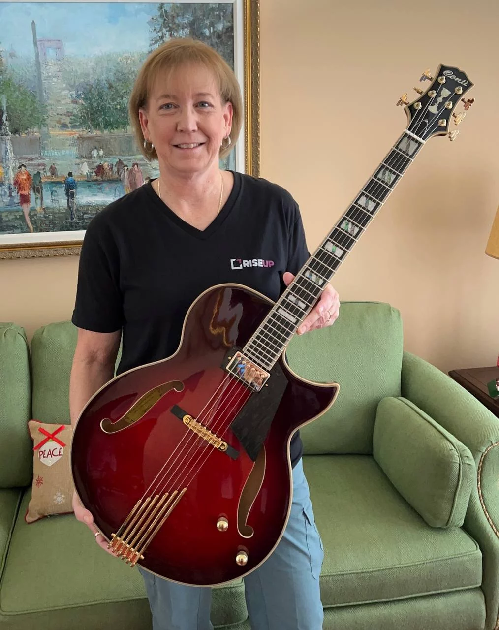 Nancy Powers from Jacksonville, FL shares a photo of herself with her new Conti Entrada Archtop Jazz Guitar