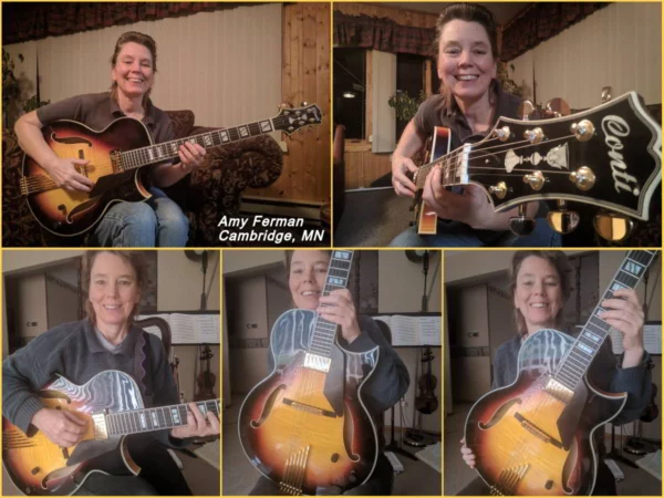 “Just thought I would let you know that I love my new guitar!! I will send you a photo and hopefully also a video. It plays perfectly right out of the box. I have been getting acquainted with her for the last couple of hours. 🙂 And thank you so much for the tuner and the awesome customer service. I loved the video!” – Amy Ferman, Cambridge, MN