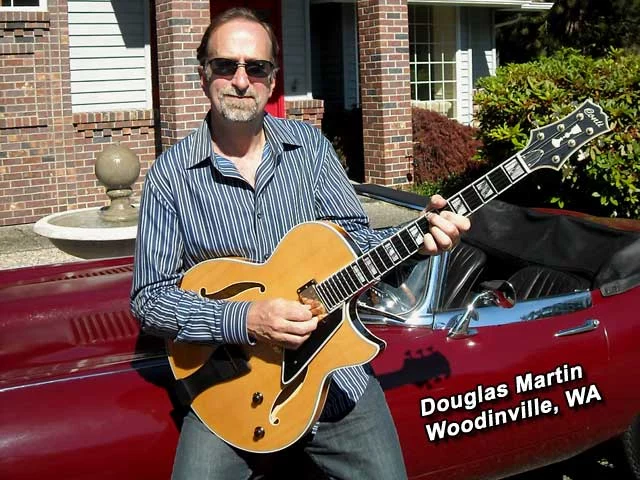 I finally got a second to write you and tell you how much I’m enjoying this wonderful guitar. It’s hard to fault this guitar for form, fit or finish. I think it’s on the level of a custom shop Gibson, but with some better appointments. I currently have a Gibson ES-165HE and a ES-135 that have both been professionally Plek’ed and they don’t play as well as this Equity right out of the box. I’m really enjoying the lightweight thinline body, can play it for hours and not feel weighted down – my ES-135 feels like I’ve strapped on a bag a bricks by comparison. All I can say is I’m quite impressed with my blonde Conti Guitar, especially the fast, low action Ebony neck. Thanks guys for sending me the close up pictures and helping me feel comfortable about spending 2 large on a guitar I’ve never seen or held. Also, thank you Robert for including the promo picture addressed to me, that extra touch made the whole “new guitar” experience very special. BTW, I’ve named her Marilyn because she’s an absolute blonde bombshell!